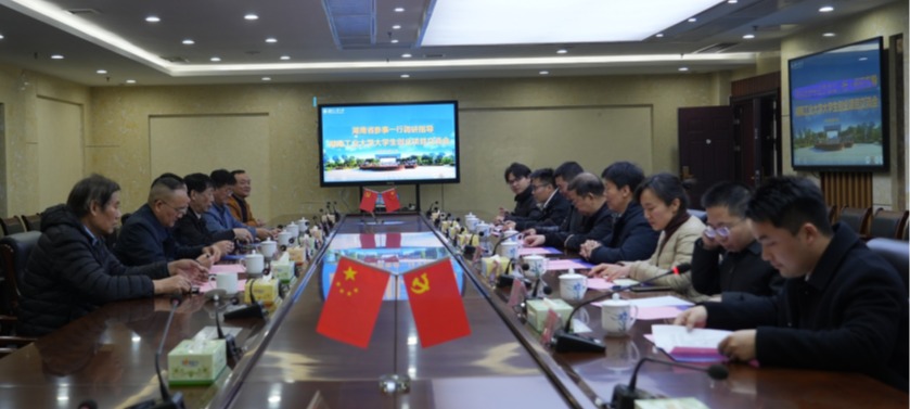 3月31日,湖南省政府参事张志初一行来校调研创新创业工作,重点考察了学生创业项目"雾净科技"的孵化成果。校党委书记刘望、副校长范晓阳陪同调研。